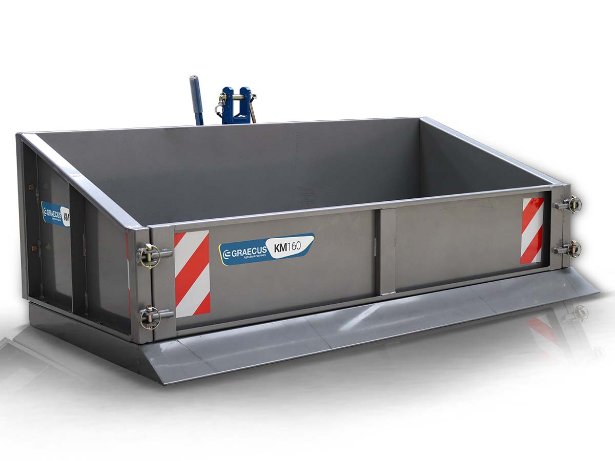 Σχεδιασμένο για απαιτητική αγροτική και επαγγελματική χρήση, το Κιβώτιο Μεταφοράς KM προσφέρει αξιόπιστη απόδοση εκεί που έχει σημασία. Η ενισχυμένη ατσάλινη κατασκευή του εξασφαλίζει μακροχρόνια αντοχή, ακόμη και υπό βαριά φορτία, ενώ το μηχανικό σύστημα ανατροπής επιτρέπει γρήγορη και εύκολη εκφόρτωση.
