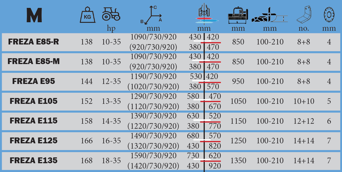 Διαθέτουν εύχρηστο σύστημα πλευρικής μετατόπισης στο τριπλό σημείο ανάρτησης, προσφέροντας γρήγορη ρύθμιση και ακριβή τοποθέτηση κατά την εργασία. Το κιβώτιο από χυτοσίδηρο (540 σ.α.λ.) σε συνδυασμό με τη μετάδοση αλυσίδας σε λουτρό λαδιού με αυτόματο τεντωτήρα εξασφαλίζουν ομαλή λειτουργία και μειωμένη συντήρηση, ενώ τα ενισχυμένα μαχαίρια 550g και τα ρυθμιζόμενα πέδιλα επιτρέπουν ομοιόμορφη κατεργασία και ακριβή έλεγχο βάθους.