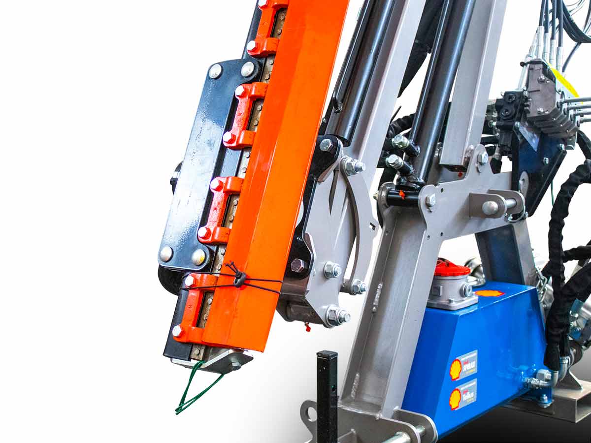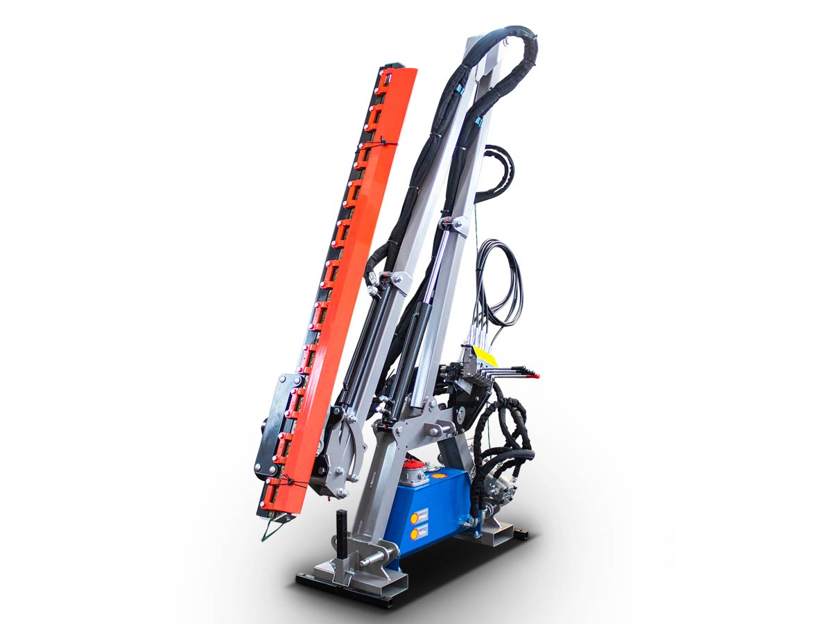 С независима хидравлична система и здрава конструкция, тя осигурява надеждна и плавна работа. Специално закалени ножове “Y” и електронно балансираният ротор гарантират чисто рязане с ниски вибрации. Дистанционното управление с гъвкави кабели улеснява работата.