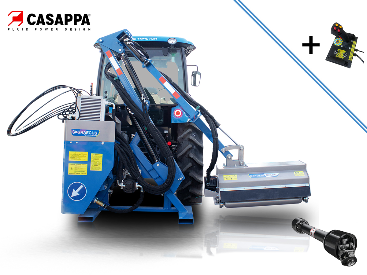 The MTK-Joystick mulcher is a medium-duty reach mower, designed to offer extended working range for roadsides, ditches, and hard-to-access areas.